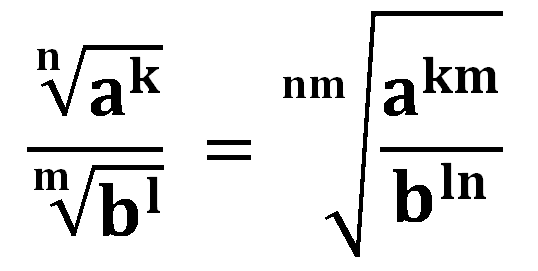 La anterior es una propiedad general, pero es mucho mas factible acudir al m.c.m ( minimo común multipo ) para llevar los índices a una igualdad. Al ser la radicación lo contrario de la potenciación, cada que uno cambia, el otro tambien cambia, es decir, si el índice se multiplica por 3, el exponente también se multiplica por 3, si el índice se divide "x" cantidad de veces, el exponente tambien debe dividirse "x" cantidad de veces. Por ejemplo el m.c.m de 4 y 6 es 12, la pregunta de oro es: ¿POR CUÁL NÚMERO DEBO MULTIPLICAR AL 4 PARA QUE LLEGUE A 12? y lo mismo con el 6. Correcto, la respuesta es 3 y 2 respectivamente, por esos dos números se debe multiplicar el exponente del factor interno del radical (en el radical que tiene como índice el 4 se debe multiplicar por 3 los exponentes internos y el que tiene como índice el 6 se multiplica por 2 los exponentes internos).